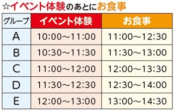 | 時間 | ※各グループ小人定員 12名まで![]() |