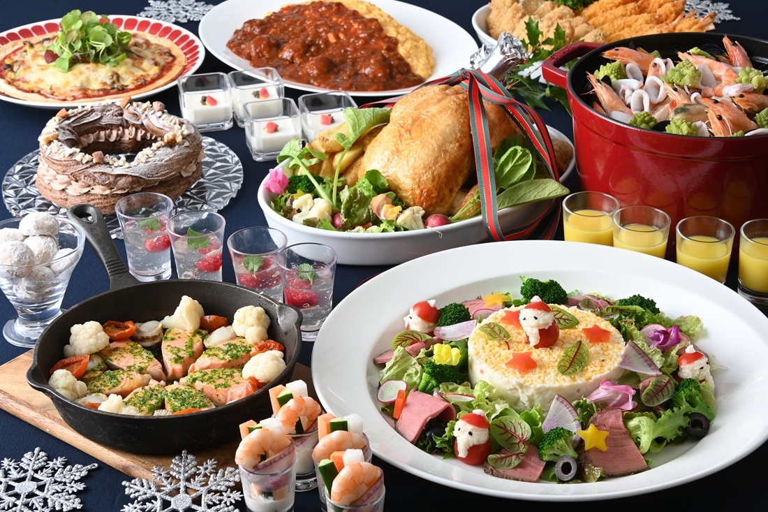 定番のローストチキン、リース仕立てのローストビーフサラダに加え、エビフライやカキフライなどお子様から大人までお楽しみいただけます。