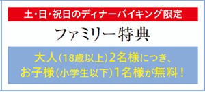 大人(18歳以上)2名様につき、お子様(小学生以下)1名様が無料になる期間限定の特典です。