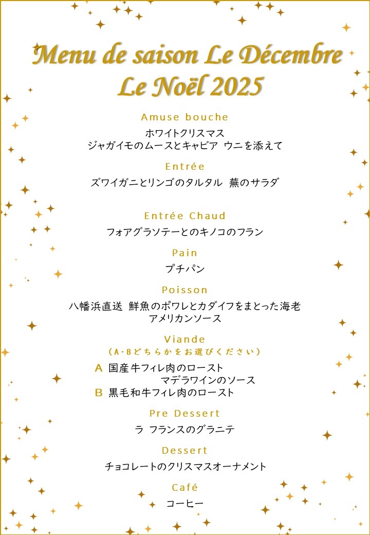 ※12月23日(火)~25日(木)のディナー営業はノエル2025のみの提供とさせていただきます。