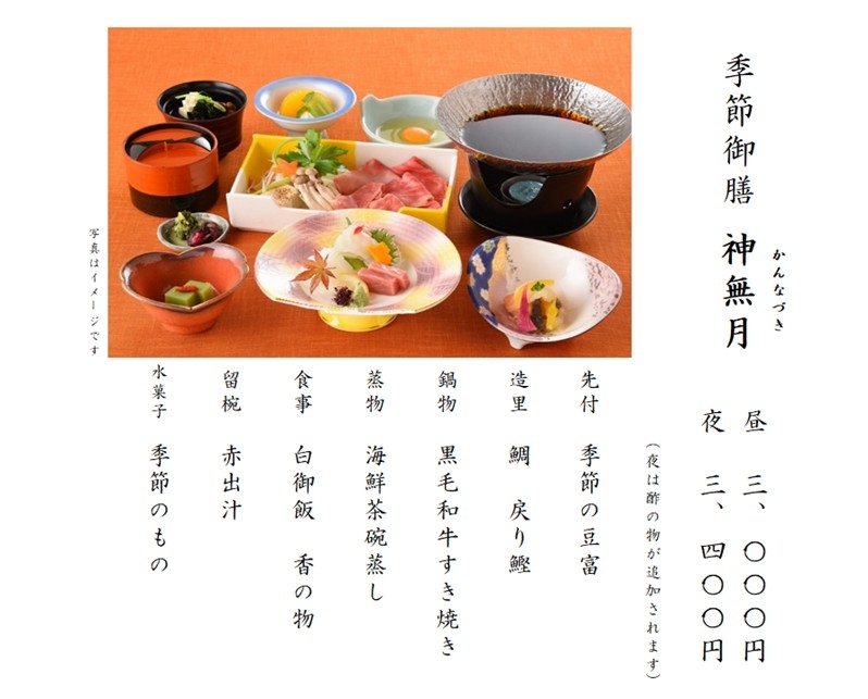 ※上記料金は、サービス料・消費税込みです。 ※仕入れの都合により、内容が変更になる場合があります。 ※写真はイメージです。
