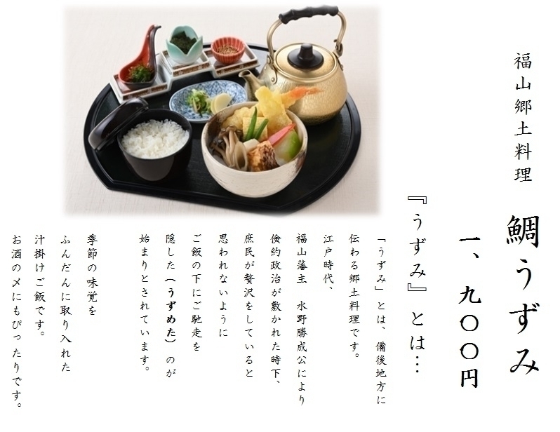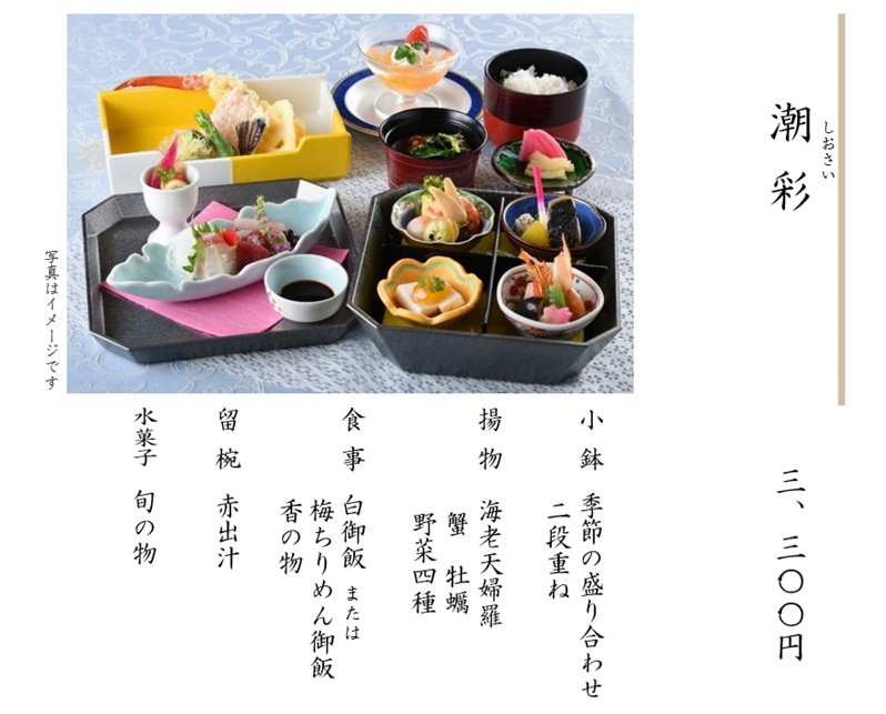 瀬戸内の旬の食材を使った料理を、お気軽にお召しあがりいただける、季節の御膳・定食をご用意いたしました。