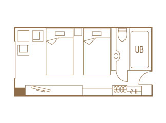 位于本酒店4~9层的小型双床间。2张床可拼在一起使用(如有需要,请在预约时告知)
